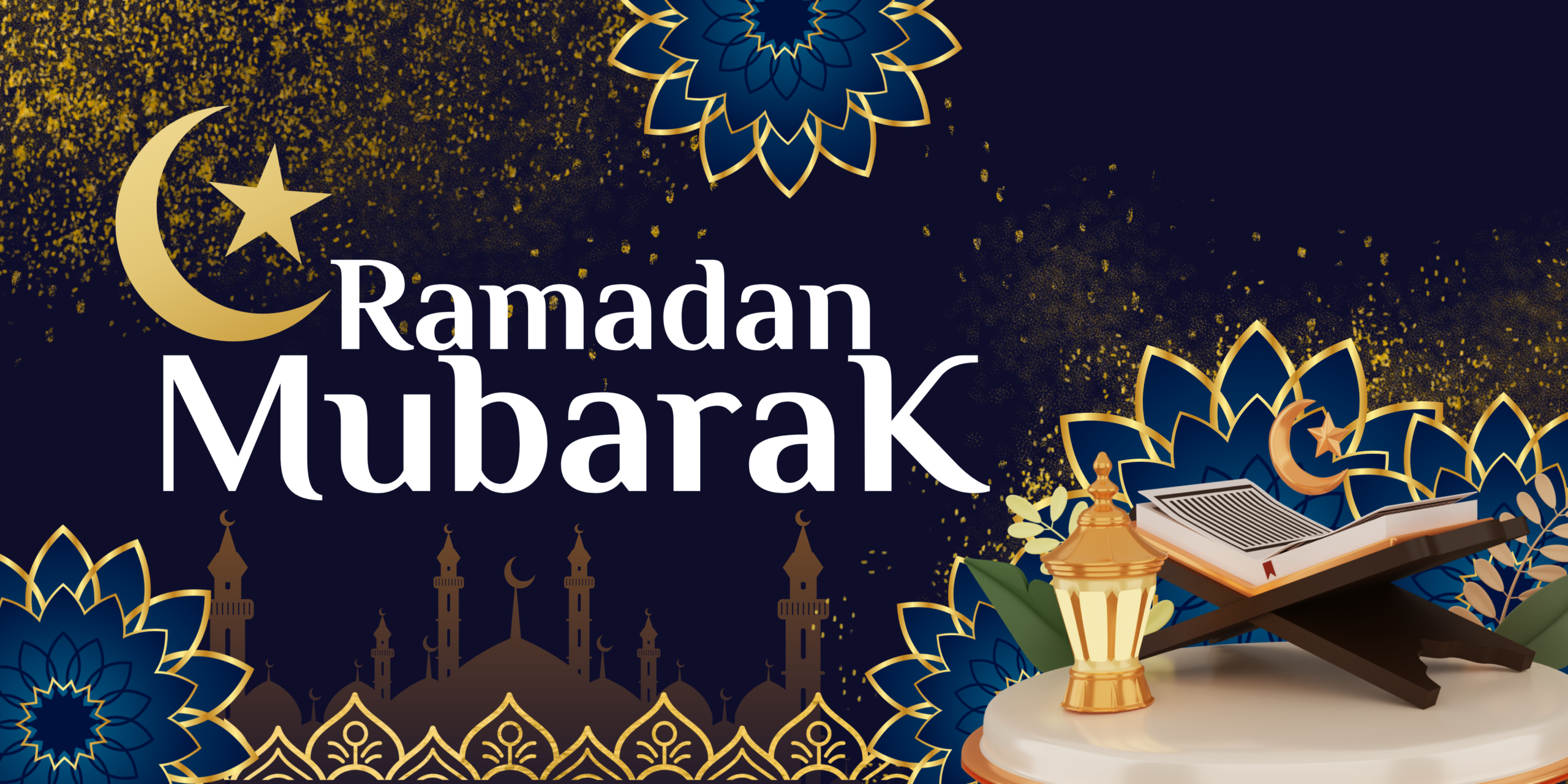 Ramadan Mubarak Customise Backdrop in Dark Blue
