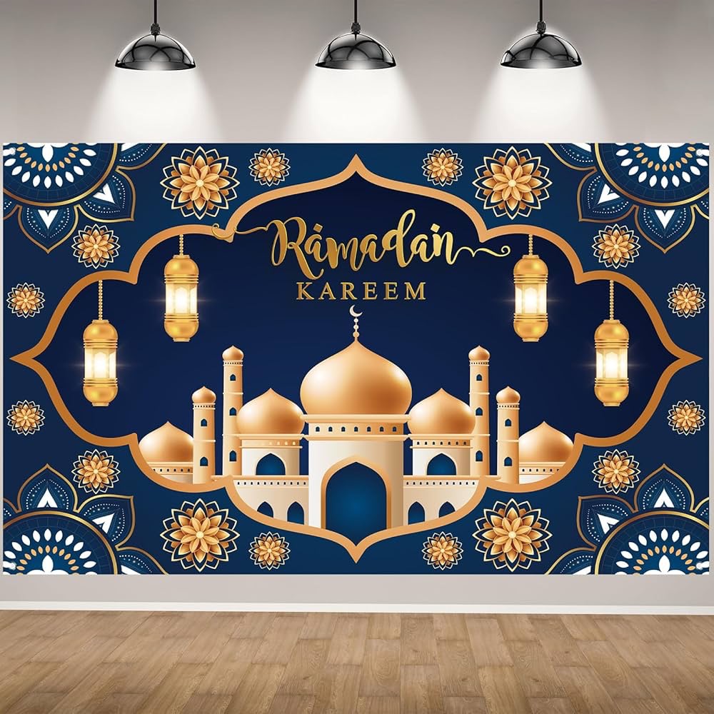 Ramadan Mubarak Customise Backdrop in Navy BlueRamadan Mubarak Customise Backdrop in Navy Blue