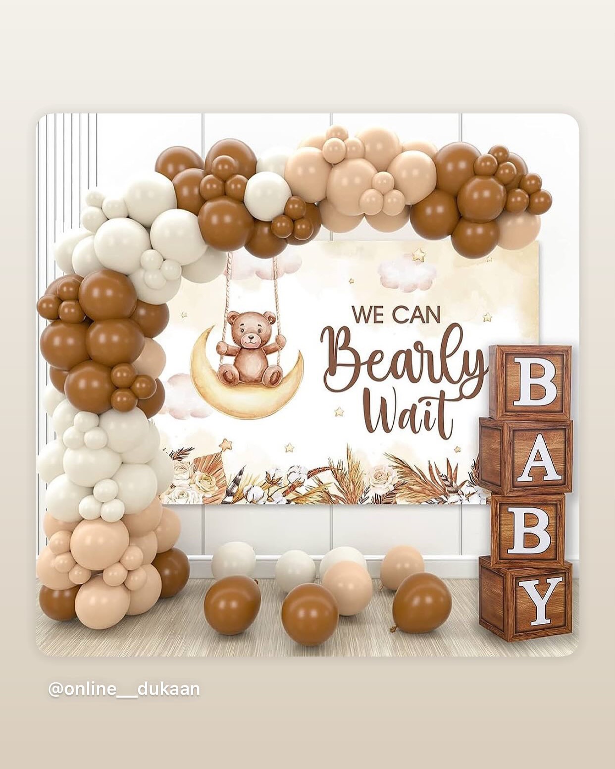 Teddy bear theme set with backdrop and white or golden baby boxes